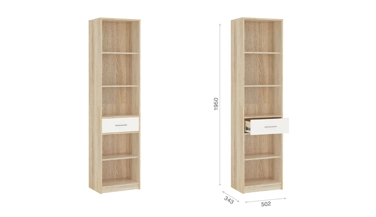 Пенал с открытыми полками имеет небольшие габариты, позволяет решить вопрос компактного размещения всех необходимых предметов. Он хорошо впишется в гостиную, в коридор, его можно поставить в детскую комнату, подойдет для устройства библиотеки. Нейтральные цвета позволяют легко сочетать пенал с другими предметами мебели и декора. Идеально компонуется со всеми модулями системы Стелс.