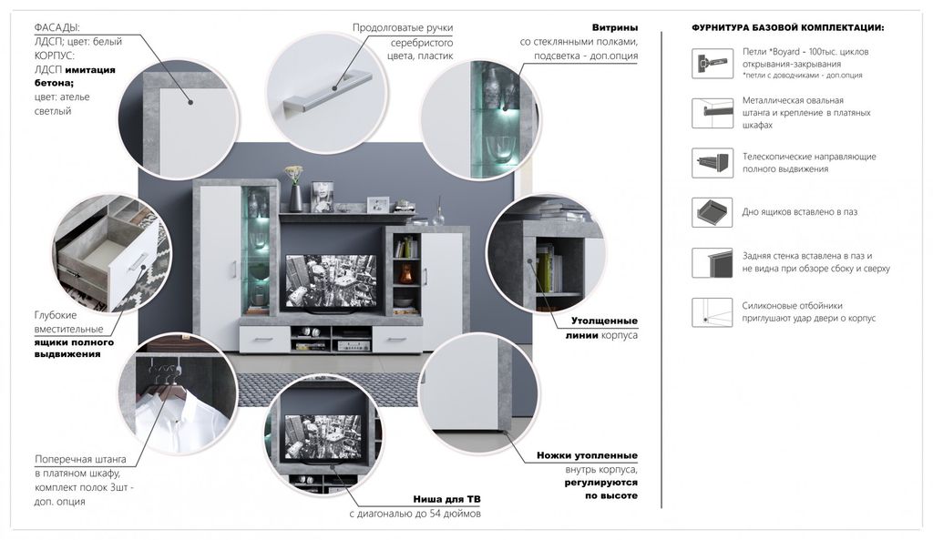 Стенка Джерси – светлая, компактная и функциональная. Беспроигрышный вариант для небольших комнат. В стенке используются новейшие тенденции: новое поколение декоров из коллекции Кроношпан (Австрия) 2018-2018, утолщенные линии корпуса, вместительные ящики полного выдвижения, регулируемые ножки. Древесный цвет, рисунок и фактура - гостиная подойдет под любой интерьер, создаст дома теплую уютную атмосферу.