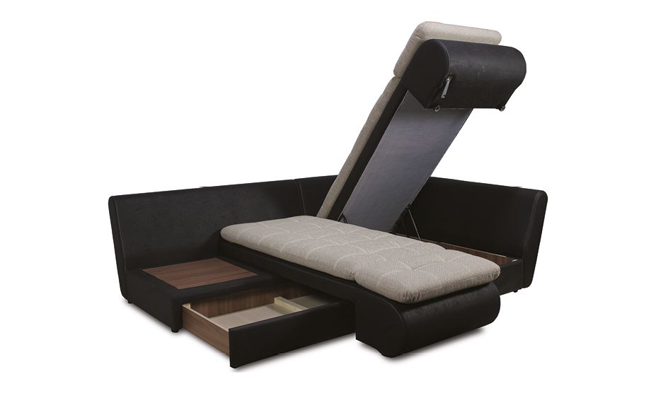 Объёмный короб для хранения в оттоманке оснащён подъёмным механизмом с газовым амортизатором.
