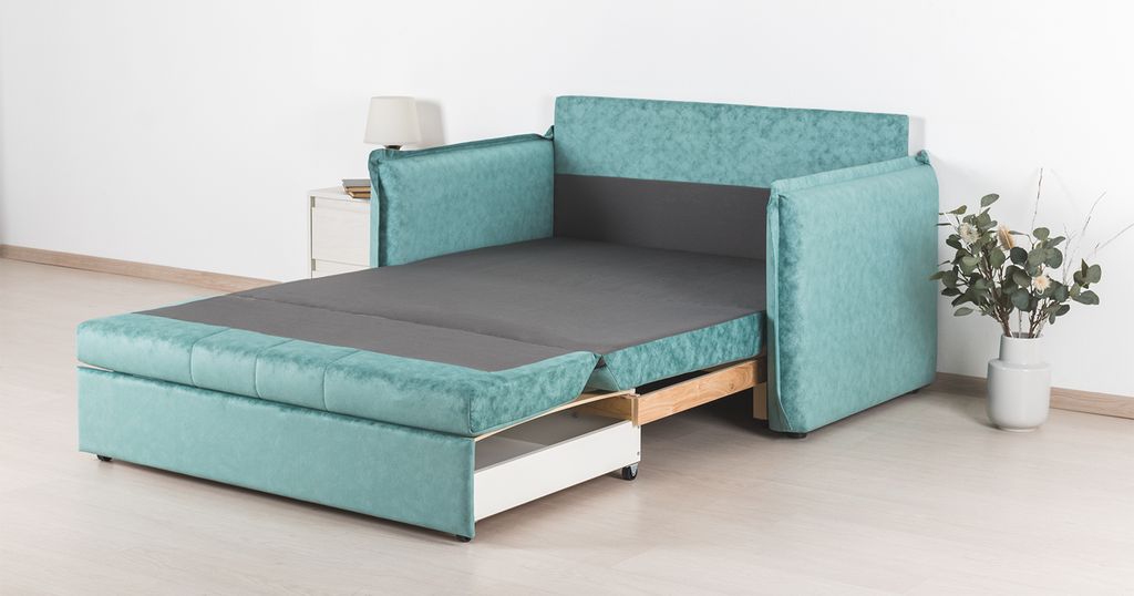 Модный компактный раскладной диванчик для гостиных или детских комнат. Простой и надежный механизм трансформации на каждый день обеспечит удобным спальным местом ребенка или подростка. Может использоваться в качестве гостевого спального места для взрослого. Размер сп. места 195 х 120 см, есть небольшой бельевой ящик. Опоры - цвет черный, круглые, высота 25 мм., выполнены из высококачественного пластика. Прочность конструкции ножек обеспечена ребрами жесткости и внутренним креплением под фурнитуру.
