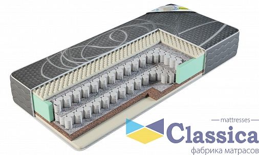 Пружинный матрас премиум- новая модель компании Classica. Изготовлен на основе 2-ух независимых пружинных блоков «Пчелиные соты» с боковой поддержкой.Матрас подойдет для семейных пар с высокой разницей в весе. Кокосовая койра придает матрасу жесткости, а мемориформ идеально повторяет контуры вашего тела.