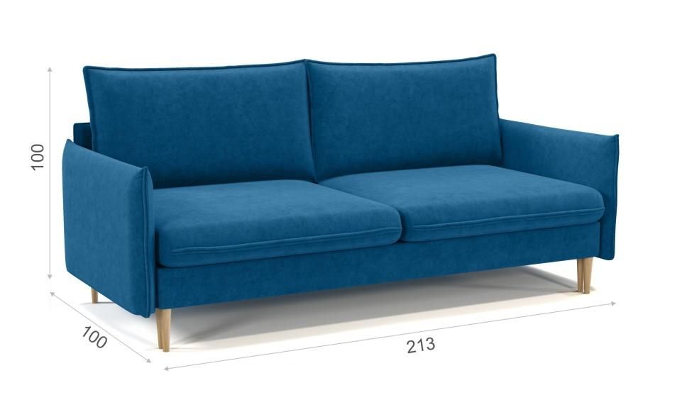 Бруно – элегантный эргономичный диван в скандинавском стиле. Деревянные ножки из массива дерева придают конструкции визуальную легкость, а узкие подлокотники экономят пространство – все это создает гармонию в любом интерьере. Нежность велюровой обивки современных оттенков подчеркивается кантом по всему периметру дивана и приспинных подушек. С помощью механизма пантограф, диван трансформируется в полноценное ровное спальное место. Независимый пружинный блок в составе дивана гарантирует комфортный сон. Вместительный бельевой короб под сиденьем удобен для хранения постельных принадлежностей.