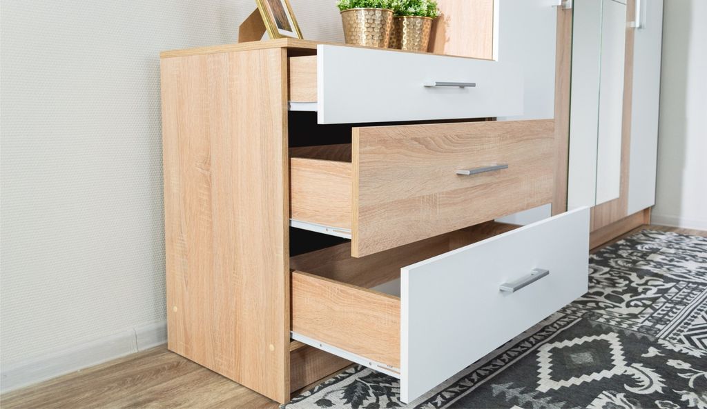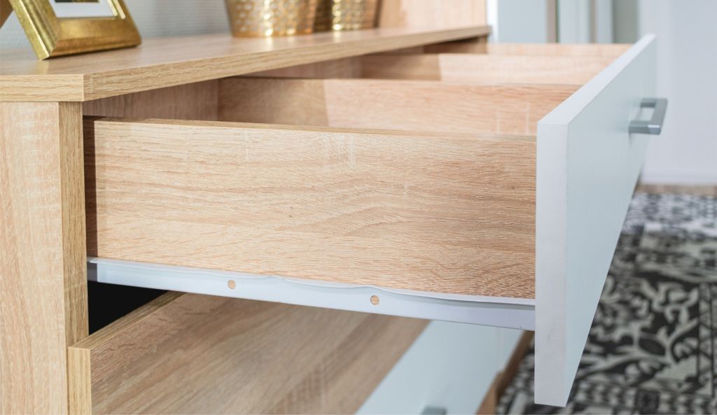 Верхний ящик комода разделен на три отдела для оптимальной организации хранения мелких предметов