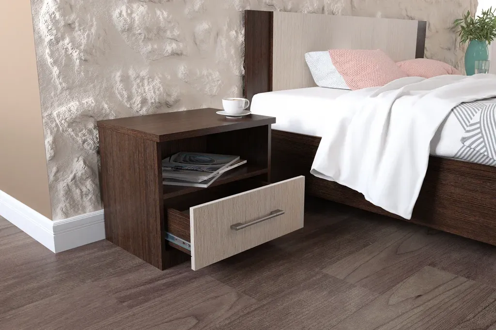 Прикроватные тумбы выполнены в стиле минимализм: строгие линии, идеальные пропорции, отсутствие декора. Все варианты цвета корпуса и фасадов подобраны в нейтральных сочетаниях, они универсальны для любого стиля интерьера, их можно сочетать со множеством ярких и насыщенных оттенков, а с помощью смены цветных текстиля и аксессуаров - полностью преображать пространство. Прикроватные тумбы с двумя ящиками на телескопических направляющих - поместят в себя все вещи, которые важно иметь под рукой - телефон, светильник или любимая книга. Идеально компонуются со всеми модулями системы Аврора.