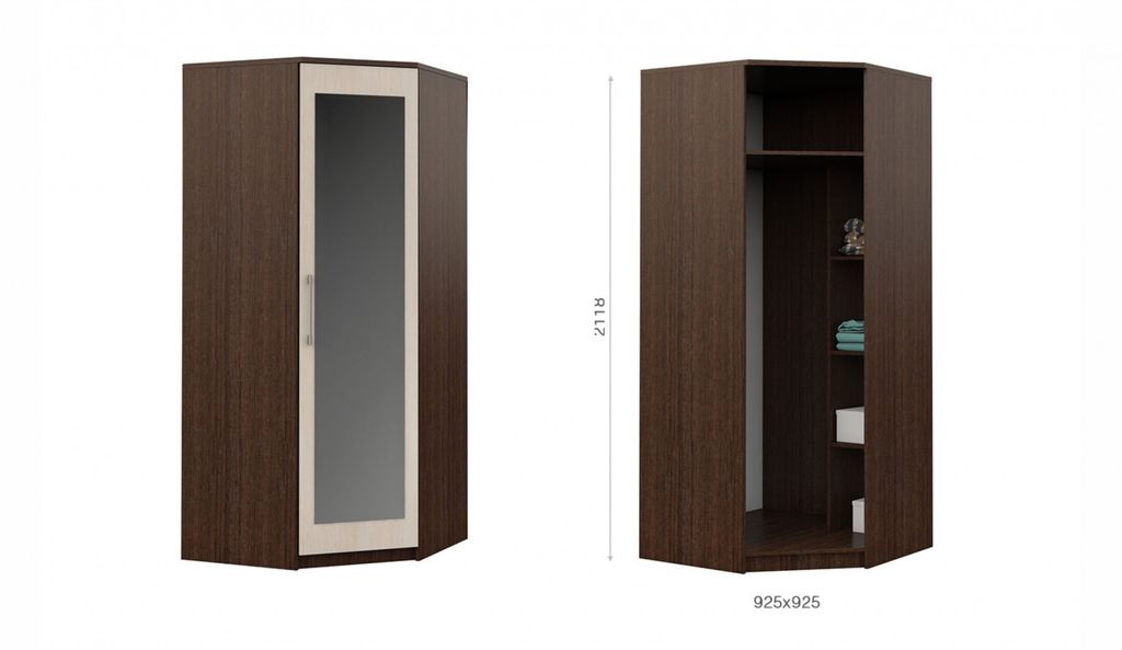 Угловой шкаф выполнен в стиле минимализм – строгие линии, идеальные пропорции, отсутствие декора. Все варианты цвета корпуса и фасадов подобраны в нейтральных сочетаниях, они универсальны для любого стиля интерьера, их можно сочетать со множеством ярких и насыщенных оттенков, а с помощью смены цветных текстиля и аксессуаров - полностью преображать пространство. Зеркало на фасаде визуально добавляет света и простора. Шкаф позволяет рационально использовать пространство и будет хорошо смотреться даже в небольшой комнате, служит связующим звеном для составления угловой системы хранения. Идеально компонуется со всеми модулями системы Аврора