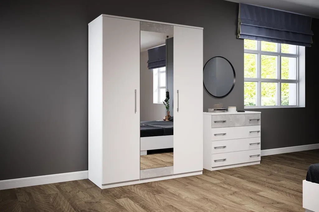 Классический распашной трехдверный шкаф - выполнен в стиле минимализм: строгие линии, идеальные пропорции, отсутствие декора. Нейтральные цвета подойдут для любого стиля интерьера, их можно сочетать со множеством ярких и насыщенных оттенков тем самым полностью преображая пространство. Зеркало на фасаде визуально добавляет света и простора. Идеально компонуется со всеми модулями системы Аврора.