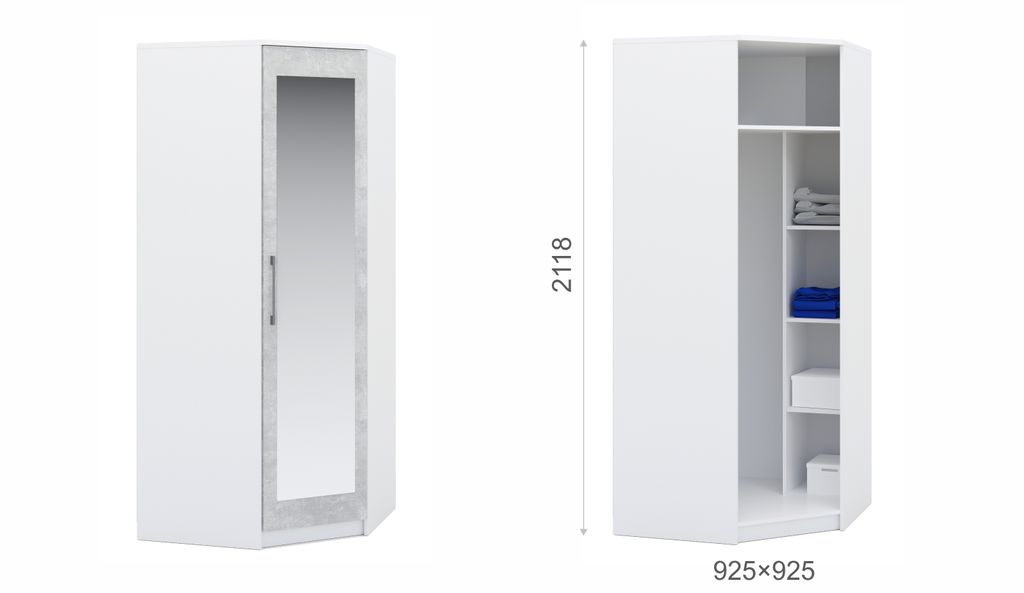 Угловой шкаф выполнен в стиле минимализм – строгие линии, идеальные пропорции, отсутствие декора. Все варианты цвета корпуса и фасадов подобраны в нейтральных сочетаниях, они универсальны для любого стиля интерьера, их можно сочетать со множеством ярких и насыщенных оттенков, а с помощью смены цветных текстиля и аксессуаров - полностью преображать пространство. Зеркало на фасаде визуально добавляет света и простора. Шкаф позволяет рационально использовать пространство и будет хорошо смотреться даже в небольшой комнате, служит связующим звеном для составления угловой системы хранения. Идеально компонуется со всеми модулями системы Аврора