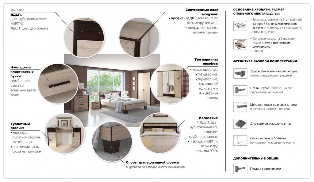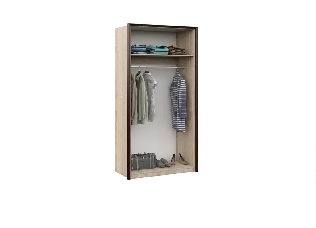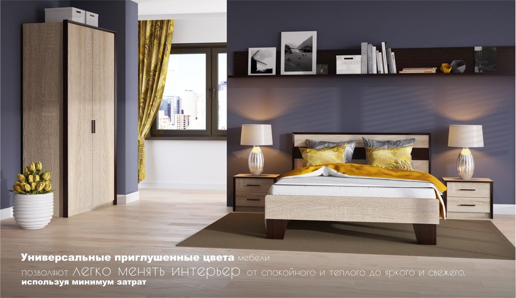 Удобный и вместительный двухдверный шкаф, внутреннее наполнение которого, позволяет хранить верхнюю одежду, постельное белье, обувь и другие необходимые вещи. Профиль из МДФ 22мм по внешним углам со скругленными краями – максимально безопасное использование мебели. Детали цвета венге подчеркивают древесную текстуру и рисунок светлого дуба сонома, придает эффектный вид. Мебель выполнена из экологичных материалов
