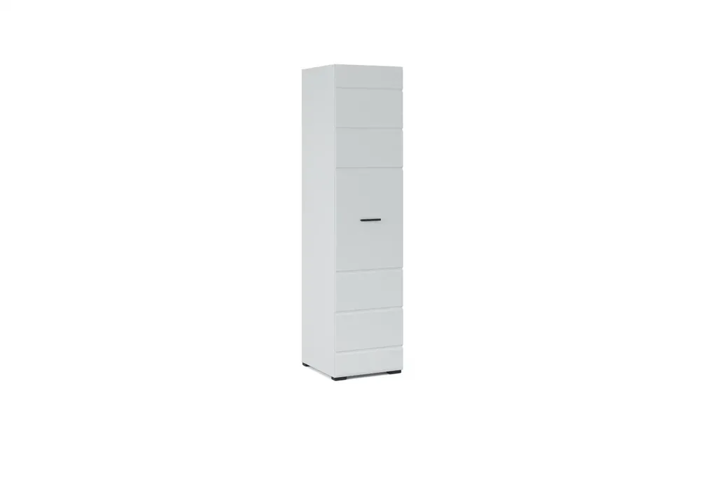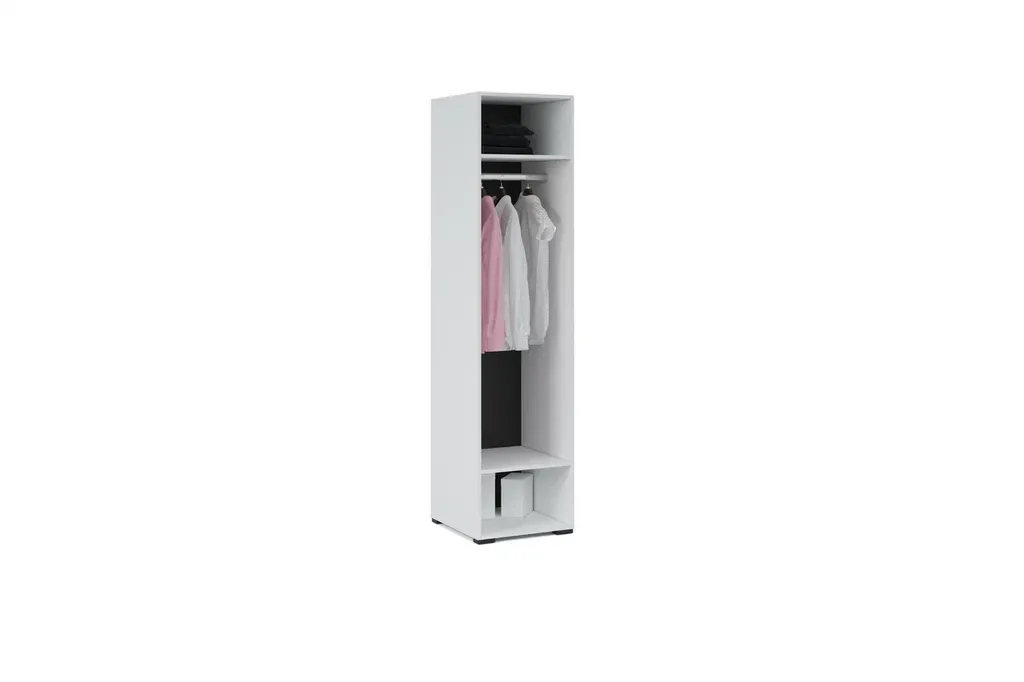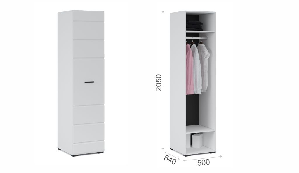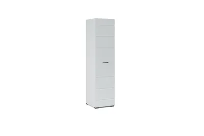 Распашной шкаф Йорк со штангой и полками поможет грамотно организовать пространство в Вашем доме. За счет белых глянцевых фасадов МДФ с горизонтальными линиями он визуально расширит пространство и наполнит его светом. Смотрится красиво со всех сторон, благодаря использованию скрытой фурнитуры для сборки. Шкаф можно дополнить другими модулями системы Йорк. Мебель выполнена из экологически безопасных материалов