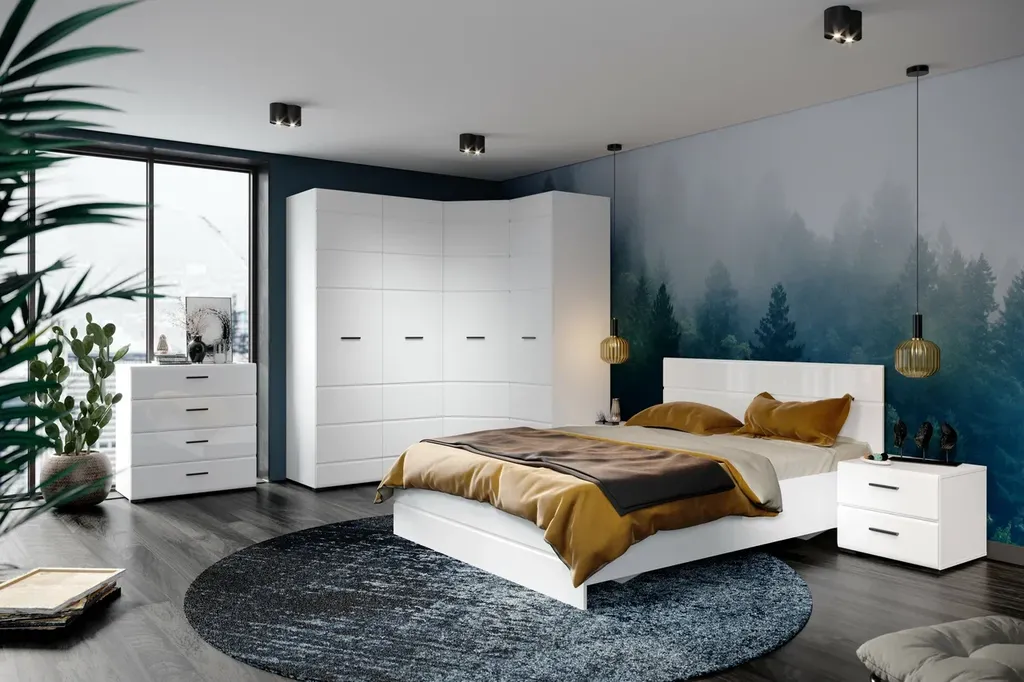 Йорк - Отличается стильным Европейским дизайном. Глянцевые белые фасады High Gloss из МДФ отражают световые потоки, спальня выглядит динамично, воздушно и легко, что актуально для небольших помещений. Разнообразие шкафов, кровати с подъёмным механизмом и с ортопедическим основанием помогут выбрать именно подходящую вам, лучшую комплектацию.
