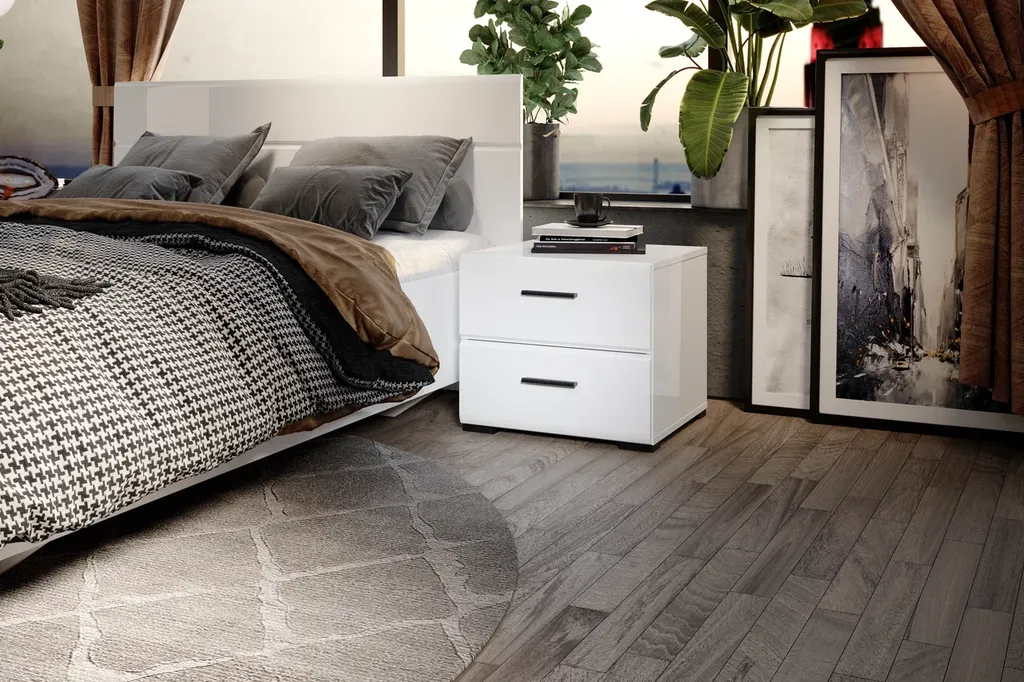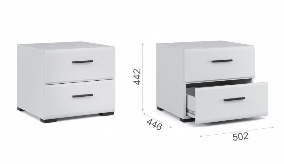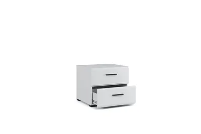 Прикроватная тумба органично впишется в интерьер современной спальни, сделает хранение вещей удобным и аккуратным. Глянцевые белые фасады High Gloss из МДФ с горизонтальной фрезеровкой делают пространство более объемным и воздушным. На поверхности тумбы можно расположить ночник, книгу, часы. Два вместительных выдвижных ящика на телескопических направляющих позволят хранить под рукой все самое необходимое – косметику, зарядное устройство, наушники. Тумба выполнена из экологически безопасных и надежных материалов