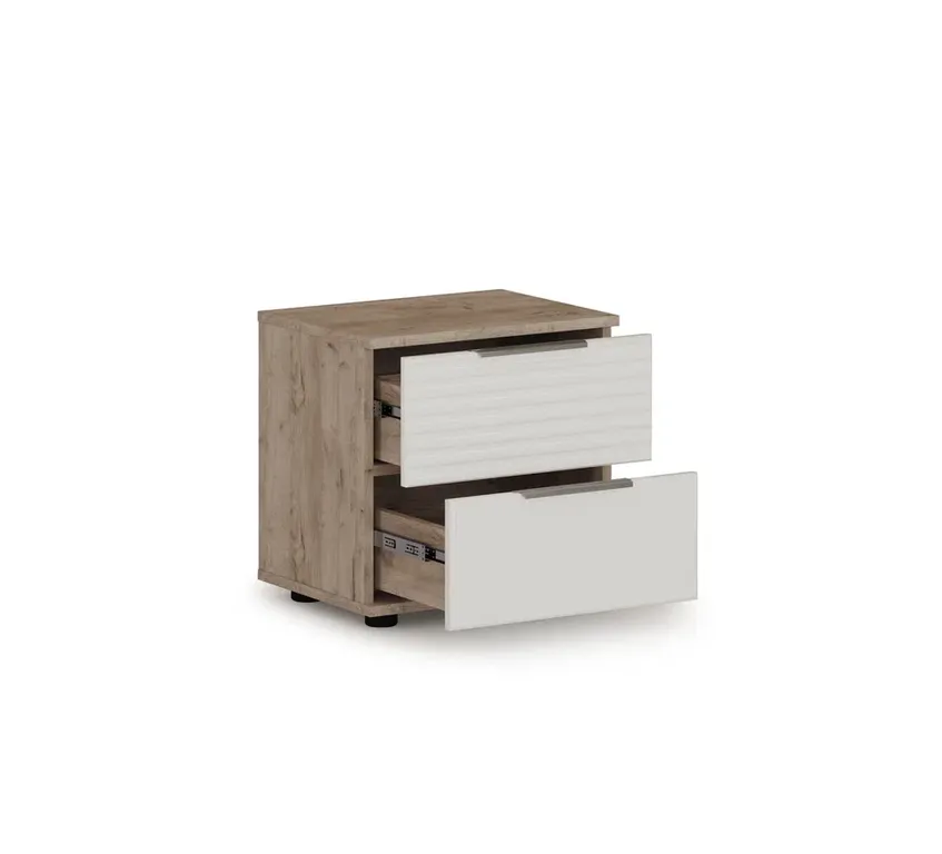 Прикроватная тумба Джулия - представитель европейского стиля минимализм. Декором белым глянцевым фасадам High Gloss служит фрезерованный рисунок «Волна» - подчеркивает зеркальный блеск, делает интерьер спальни особенным и неповторимым. Торцевые ручки из хромированного металла - яркий акцент фасадов. Тумба с ящиками на телескопических направляющих - поместит в себя все вещи, которые важно иметь под рукой - телефон, светильник или любимая книга. Идеально компонуются со всеми модулями системы Джулия.