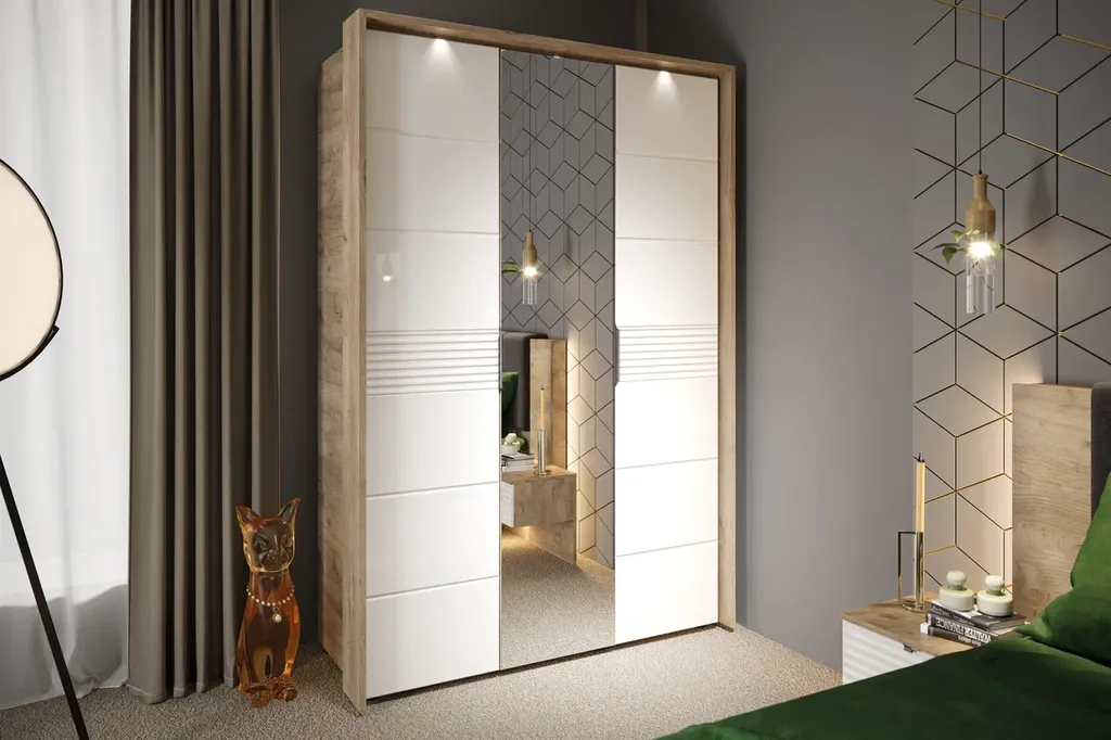 Современный распашной шкаф Джулия яркий представитель европейского минимализма. Дополнительная опция – светодиодная подсветка монтируется в верхней части портала над каждой дверью. Шкаф выполнен из экологически безопасных надежных материалов. Декором белым глянцевым фасадам High Gloss служит фрезерованный рисунок «Волна» - подчеркивает зеркальный блеск, делает интерьер спальни особенным и неповторимым. Торцевые ручки из хромированного металла - яркий акцент фасадов.
