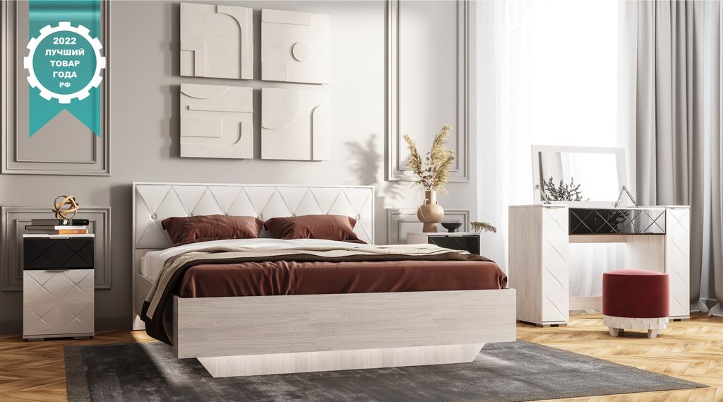 Кимберли - Материал корпуса: ЛДСПМатериал фасада: МДФ Спальное место, мм: 1600*2000. Мягкое изголовье. Направляющие ящиков Шариковые. Цвет корпуса/цвет фасада: ясень белый/белый глянец