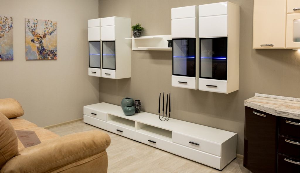 Гостиная Йорк с витринами, белый, белый глянец - 46 150, 00