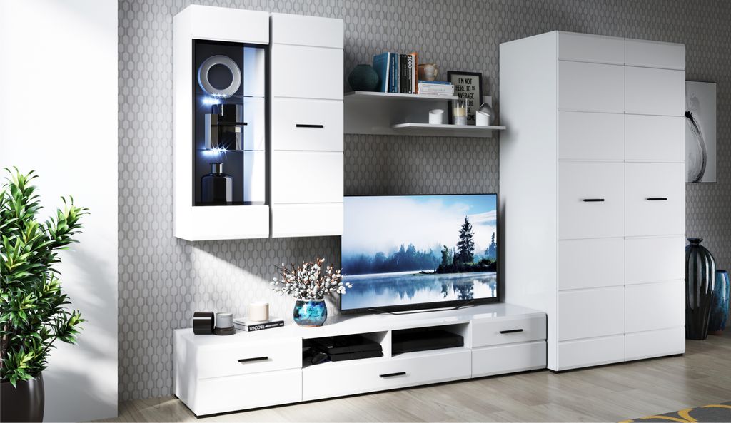 Гостиная Йорк с шкафом, белый, белый глянец - 52 700,00