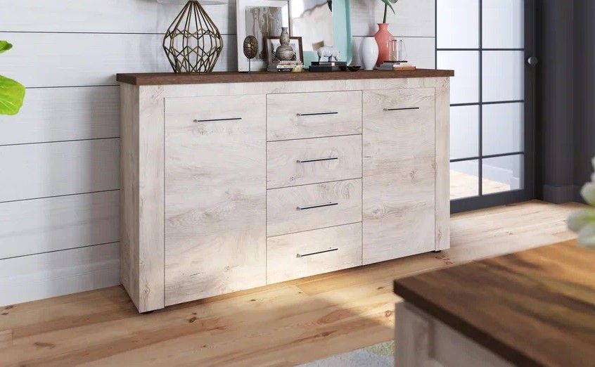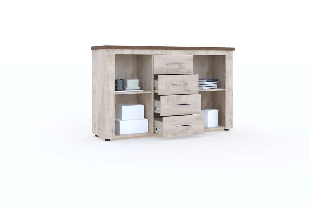Мэдисон - Теплые древесные цвета с фактурой и рисунком натурального дерева, комода Мэдисон, подарят Вашему дому ощущение тепла и уюта. Вместительные закрытые полки и ящики на телескопических направляющих помогут распределить вещи в соответствии с Вашими желаниями и предпочтениями. На верхнюю крышку комода, которая сделана из утолщенной плиты с мягкими безопасными краями, можно поставить фото, цветы, декор. Выполнен из экологически безопасных материалов
