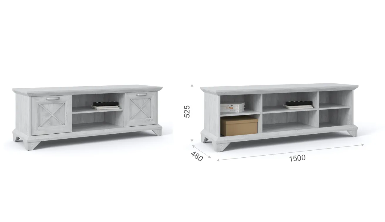 Тумба ТВ 2д Лорена – функциональный элемент гостиной в стиле неоклассика, оснащена всем необходимым для удобства использования. Два открытых отделения и полки за закрытыми фасадами помогут разместить документы, медиа технику, пульты и другие необходимые вещи. Выполнена из экологичных материалов. Тумба для ТВ позволит установить телевизор диагональю до 65 дюймов, на полках можно разместить другие медиаустройства