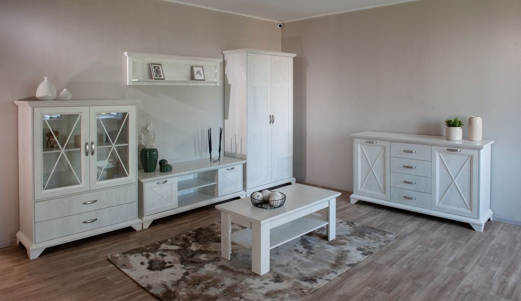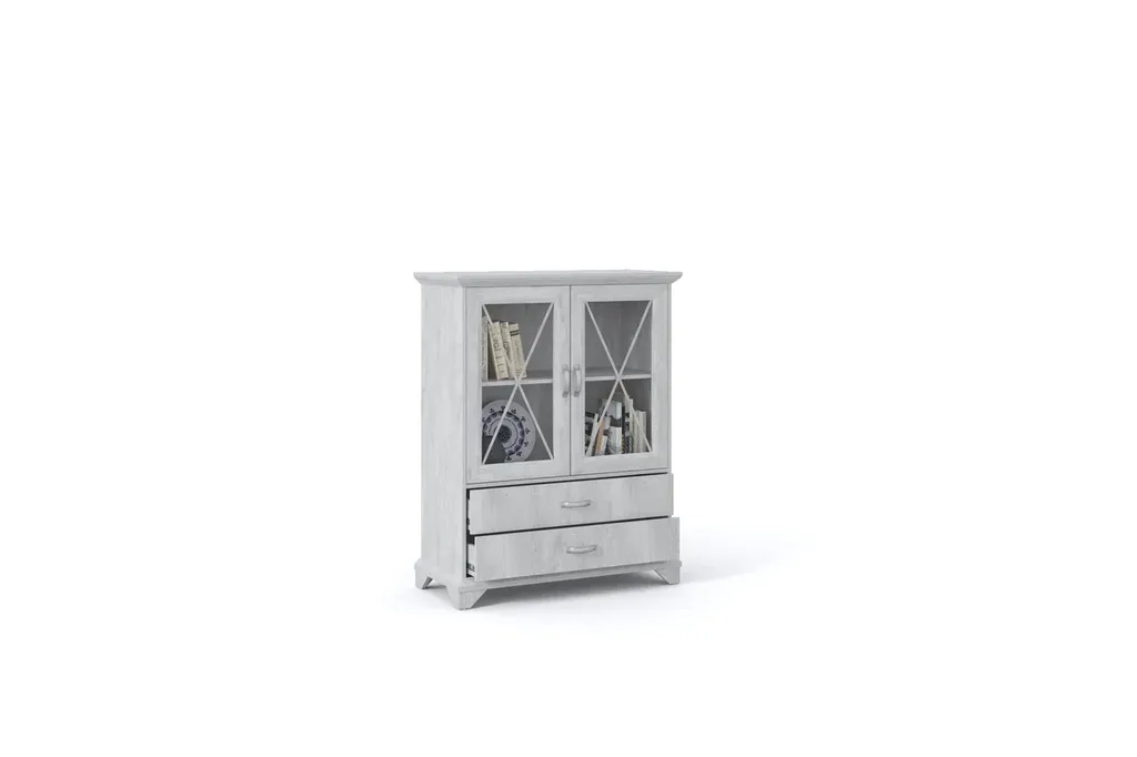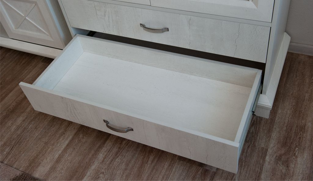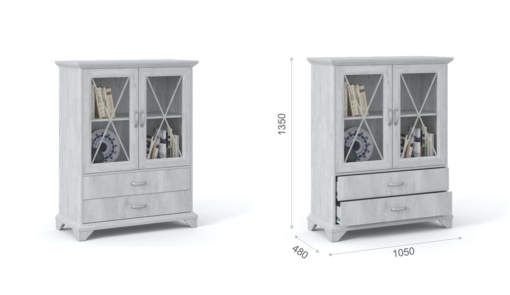 Вместительный комод Лорена - в стиле неоклассика создает уютную атмосферу в интерьере гостиной или спальни. Белые фасады с фактурой и рисунком натурального дерева наполняют комнату светом, делают ее просторнее. Металлические ручки цвета состаренного серебра придают изысканность, а фигурные ножки и декоративный карниз подчеркивают стилистику коллекции. За прозрачными витринами будут идеально смотреться красивая посуда, антикварный декор и сувениры. В выдвижных ящиках на телескопических направляющих удобно хранить текстиль, посуду