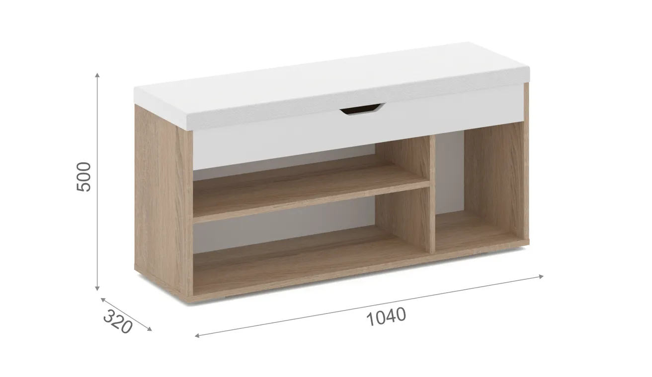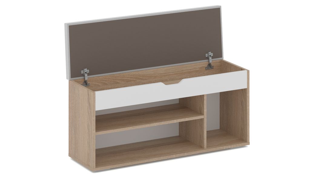 Аризона – это компактная и функциональная модель для хранения обуви, аксессуаров и различных мелочей. Благодаря нейтральным цветам модель впишется в интерьер любого стиля и подойдет даже для небольших помещений. Оснащена большим отделением с полками для повседневной обуви, а в боковой нише удобно хранить сапоги или высокие ботинки. В скрытом пространстве под крышкой можно разместить обувь и средства по уходу за ней. На мягкой подушке удобно присесть во время переобувания.