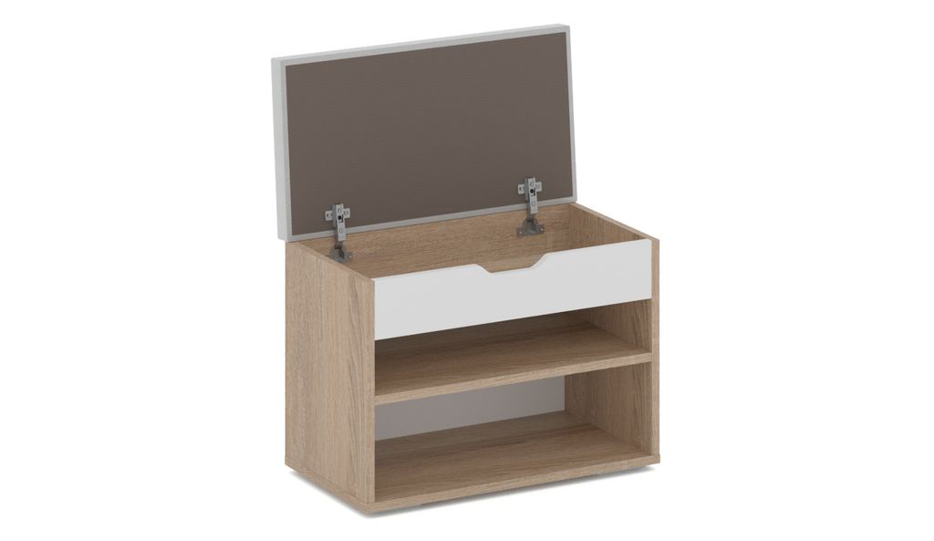 Компактная тумба Аризона - отлично подойдет для правильной организации хранения обуви в небольших помещениях. В нише с двумя полками можно хранить повседневную обувь, а в скрытом под крышкой из ЛДСП отделении – зонты, аксессуары и средства по уходу за обувью. На мягкой поверхности удобно присесть и переобуться. Благодаря нейтральным цветам модель впишется в интерьер любого стиля