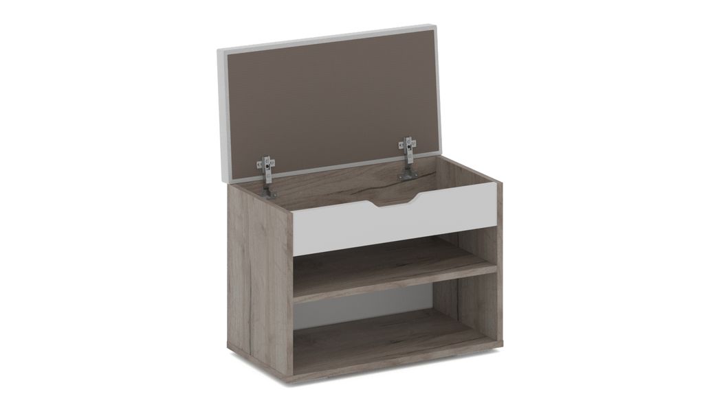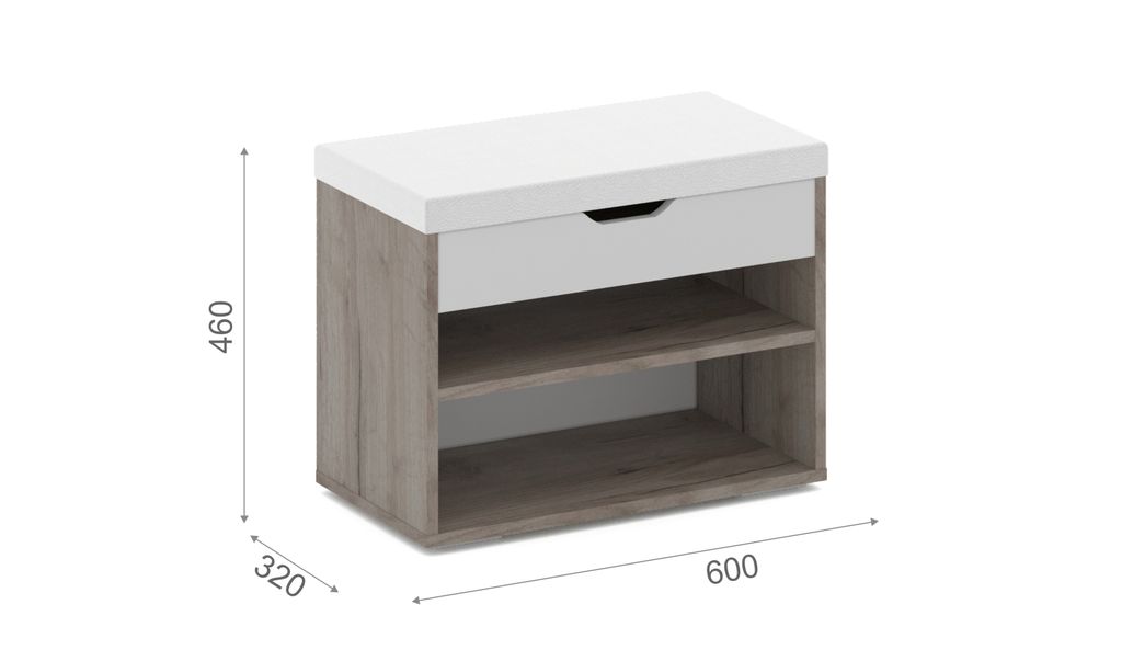 Компактная тумба Аризона - отлично подойдет для правильной организации хранения обуви в небольших помещениях. В нише с двумя полками можно хранить повседневную обувь, а в скрытом под крышкой из ЛДСП отделении – зонты, аксессуары и средства по уходу за обувью. На мягкой поверхности удобно присесть и переобуться. Благодаря нейтральным цветам модель впишется в интерьер любого стиля