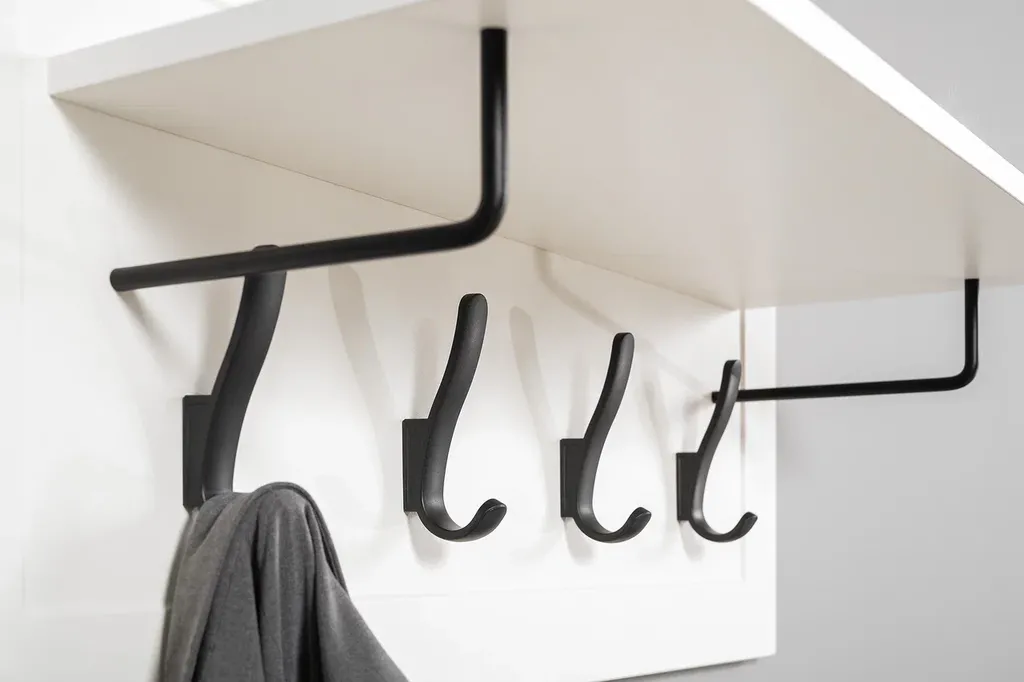 Прихожая доступна в цвете белый в сочетании с теплым древесным декором.