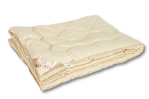 одеяло с наполнителем из овечьей шерсти 200 г/кв.м, чехол - ткань микрофибра , окантовка-косая бейка, бирка, постер, в сумке