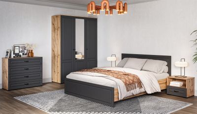 Спальня Лацио Сканди — это сочетание неоклассики и природной простоты скандинавского стиля. Она впечатляет своим очарованием благодаря фрезерованным фасадам из МДФ и корпусу, который имитирует текстуру натурального дерева. Графитовый оттенок внутренней стороны фасадов идеально сочетается с внешним цветом, создавая роскошный премиальный вид. Цветовая гармония задней стенки и корпуса в шкафах-витринах придает интерьеру целостность и эстетическую привлекательность. Множество модулей системы Лацио сканди позволяет создать индивидуальный дизайн, оптимально используя пространство интерьера любой площади. Дополнительные антресоли увеличивают высоту шкафов до 2,45м, делая комнату ещё более удобной и организованной.