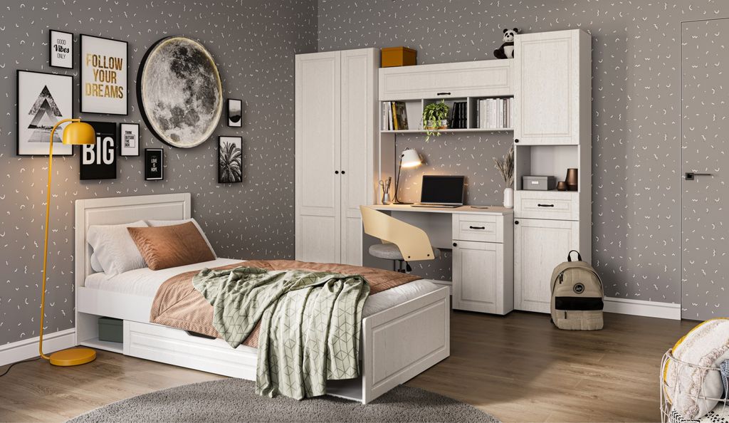 Система Лацио предлагает беспрецедентную свободу в оформлении детской комнаты, позволяя создать подходящее место для творчества, учебы и отдыха. Система модулей адаптируется к возрастным особенностям и увлечениям ребенка, поддерживая его развитие на каждом этапе. Белые фасады из МДФ с текстурой дерева придают комнате ощущение простора и света, поддерживая позитивное настроение. Мебель изготовлена из экологически чистых материалов ЛДСП и МДФ, что делает ее безопасной для использования в детской. Система Лацио - это не просто мебель, это инвестиция в счастливое детство вашего ребенка.