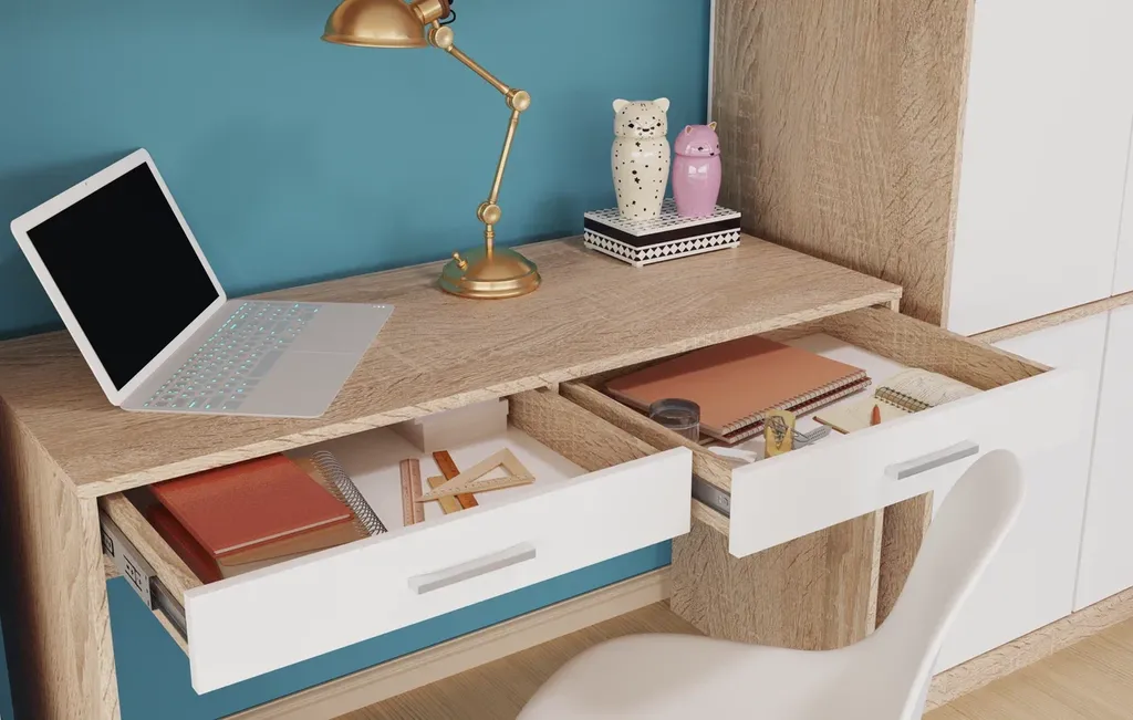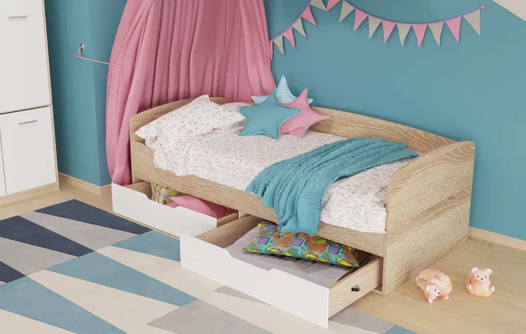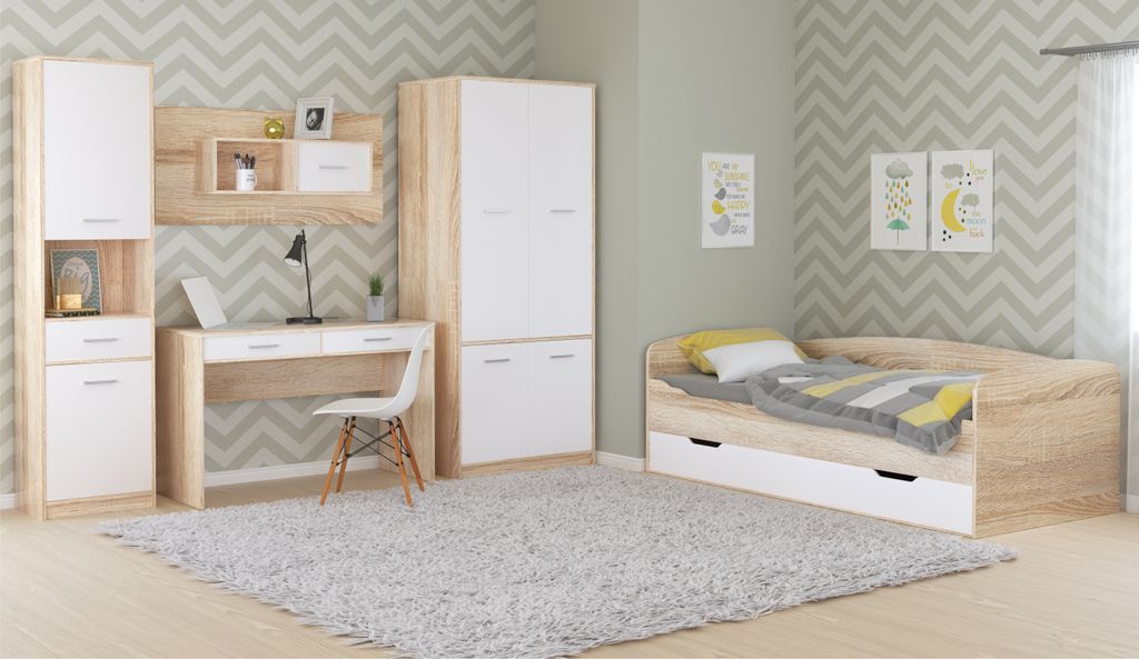 Стелс - это комплексное решение для детей любого возраста, так как именно современный стиль наилучшим образом подстраивается под потребности и вкусы юного хозяина или хозяйки. Белые фасады в сочетании с древесным цветом светлого дуба способствуют активности, развитию и хорошему здоровью.