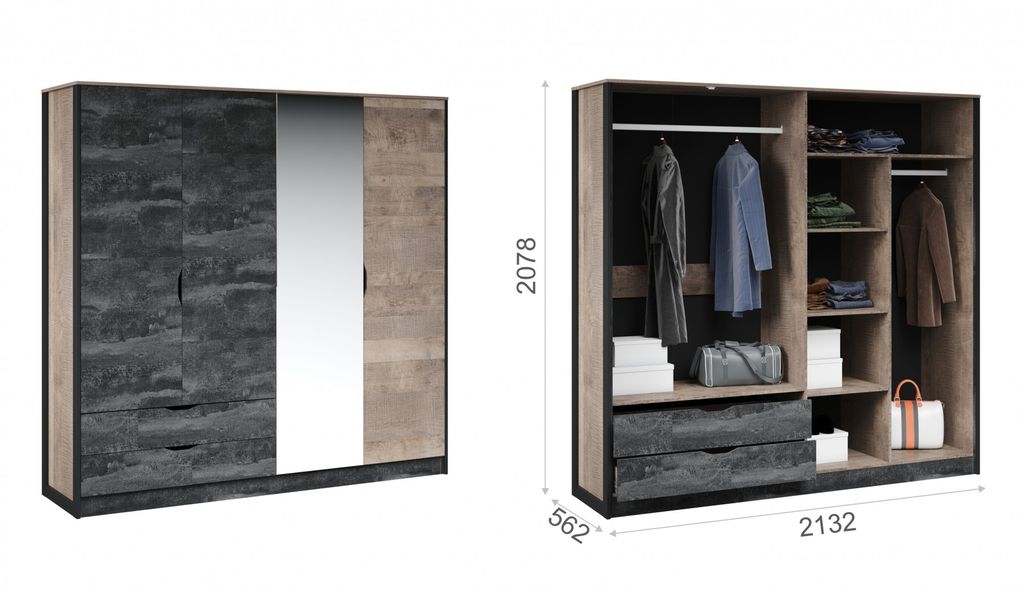 | Шкаф 4-х дверный Дуб гранж песочный/Железный камень | 47 000,00 |