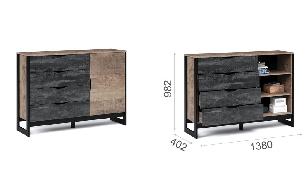 | Комод 1д 4ящ Дуб гранж песочный/Железный камень | 21 900,00 |